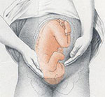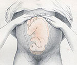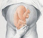 ใช้มือทั้งสองข้างคลำด้านข้างของมดลูก เพื่อหาตำแหน่งของหลังและแขนขาของทารก