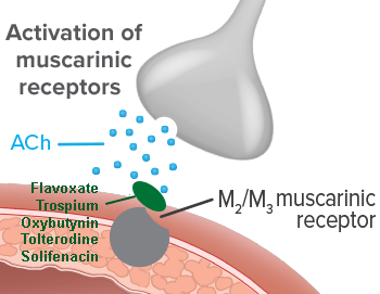 - ใช้บรรเทาอาการเบาเล็ด/ราด จากภาวะกระเพาะปัสสาวะบีบตัวมากผิดปกติ (Overactive bladder)
