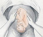 ใช้มือทั้งสองข้างคลำด้านข้างของมดลูก เพื่อหาตำแหน่งของหลังและแขนขาของทารก