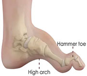 - เท้าผิดรูป เช่น pes cavus (เท้าโก่งสูง) หรือ hammer toes (นิ้วเท้างอ)