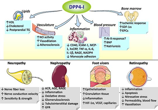 นอกจากนี้ การยับยั้ง DPP4 จะช่วยให้อินครีตินตามธรรมชาติทุกชนิดออกฤทธิ์ได้นานขึ้น
