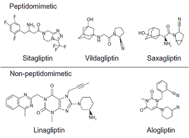 Vildagliptin (Galvus®) และ Saxagliptin (Onglyza®) มีโครงสร้างเพปไทด์เทียมในรูปสามมิติ ส่วนยารุ่นหลัง เช่น Linagliptin (Trajenta®) และ Alogliptin (Nesina®) ไม่มีโครงสร้างลักษณะนี้ Linagliptin เป็นยาที่ขับออกทางไตน้อยที่สุดในกลุ่ม