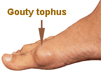 โรคเกาต์เป็นโรคข้ออักเสบที่เกิดจากการมีระดับกรดยูริกในเลือดสูงต่อเนื่องเป็นเวลานาน จนกรดยูริกตกผลึกสะสมอยู่ภายในข้อ ตำแหน่งที่พบบ่อยที่สุดคือข้อนิ้วหัวแม่เท้า รองลงมาคือข้อเท้า เมื่อผลึกสะสมมากขึ้นจะรวมตัวกันเป็นก้อนแข็งนูนบริเวณข้างข้อ เรียกว่า “โทฟัส” (tophus) และหากมีหลายก้อนจะเรียกว่า “โทไฟ” (tophi)