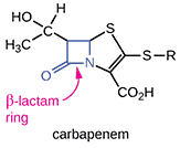 โครงสร้างของคาร์บาพีเนมมีความคงตัวสูงต่อเอนไซม์ β-lactamase