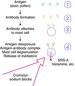 - SRS-A (กลุ่มลูโคไตรอีน) ทำให้เกิดการอักเสบและหลอดลมหดตัว