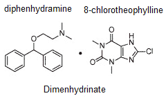 โครงสร้างของยาเป็นสารประกอบเชิงซ้อนระหว่าง diphenhydramine กับ 8-chlorotheophylline โดย chlorotheophylline ถูกเติมเข้าไปเพื่อลดความง่วงซึมบางส่วนที่เกิดจาก diphenhydramine