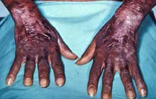 อาการสำคัญของโรคประกอบด้วย 3 D ได้แก่ Diarrhea (ท้องเดิน), Dermatitis (ผิวหนังอักเสบ) และ Dementia (สติวิปลาส) อาการผิวหนังมักเกิดบริเวณที่ถูกแสงแดด เริ่มจากผื่นแดง นูน อักเสบ ต่อมาจะเปลี่ยนเป็นสีน้ำตาลไหม้ ผิวแห้ง หยาบ หนา แตก ลอก และคล้ำคล้ายสวมถุงมือหรือถุงเท้าดำ จึงเรียกว่า “โรคหนังกระ” หากเป็นมากขึ้นจะมีอาการทางจิตประสาท เช่น ซึมเศร้า หงุดหงิด นอนไม่หลับ ความจำเสื่อม หลงผิด และในรายเรื้อรังอาจรุนแรงถึงขั้นวิกลจริต