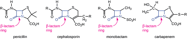 - การสร้างเอนไซม์ β-lactamase เพื่อทำลายวง β-lactam