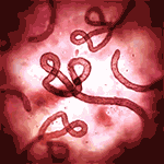 ไวรัสอีโบลาเป็นไวรัสชนิด RNA สายเดี่ยวขั้วลบ อยู่ในตระกูล Filoviridae ลักษณะคล้ายท่อยาวขด มักพบในค้างคาวผลไม้ซึ่งเป็นพาหะหลักของโรค การติดเชื้อเกิดจากการสัมผัสกับของเหลวจากร่างกายของผู้ป่วย เช่น น้ำลาย อุจจาระ อาเจียน เหงื่อ น้ำนม น้ำอสุจิ น้ำในช่องคลอด หรือสิ่งของที่ปนเปื้อนของเหลวเหล่านี้ ไม่แพร่กระจายทางอากาศเหมือนไวรัสอื่น ระยะฟักตัวเฉลี่ย 4-10 วัน